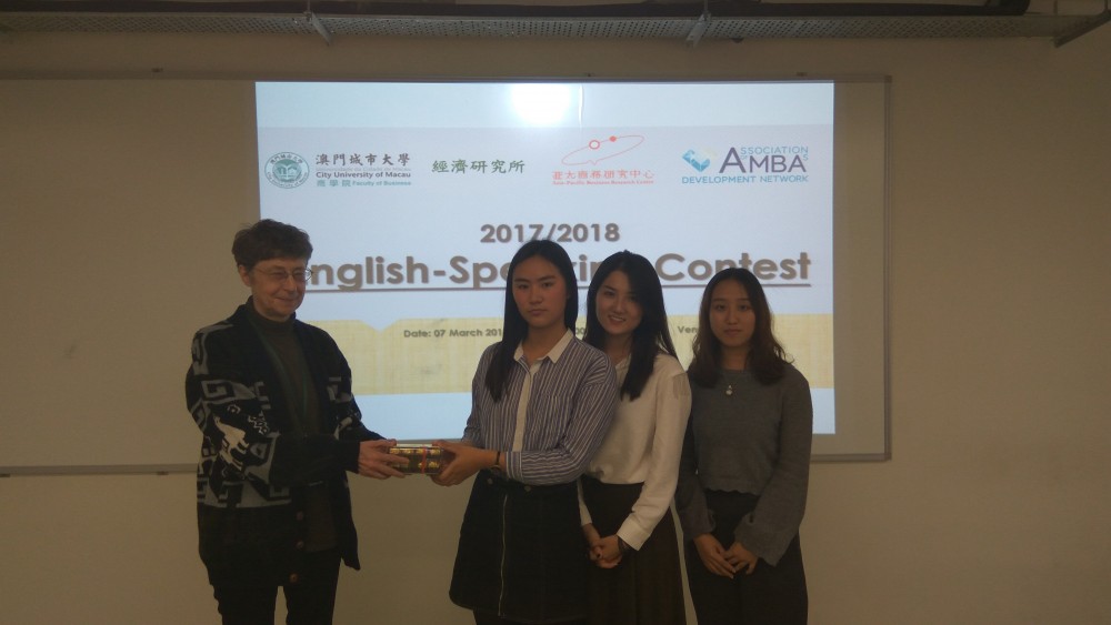 The Faculty of Business International Business Cohort held the 2017/18 English Speaking Contest on 7th March. Professor Priscilla Roberts, Course Coordinator of International Business Cohort, FOB, and Professor Fong Kwong Yee, Course Coordinator of the BBA Programme, were invited to be the judges of this contest.