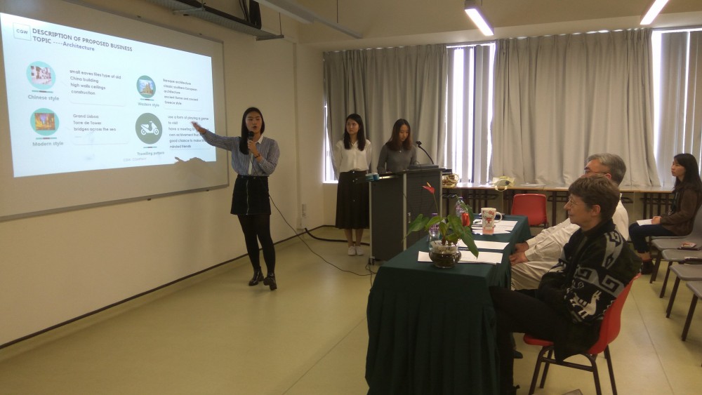 Nine teams, all the 1st and 2nd years of International Business Cohort students, focused on the topic of Boa Vista Macau (The good Life in Macau) as a subject for entrepreneurship. Their entries described business opportunities in tourism, food, cosmetics, herbal cuisine, electronic payments, and the Internet Café industry. The teams of speakers presented their business plans, financial budgets and marketing strategies, using imaginative power points to back up their verbal presentations. Following each team’s presentation, students in the audience asked questions about its strong and weak points. The teachers praised all the students involved for their great efforts and outstanding performances.