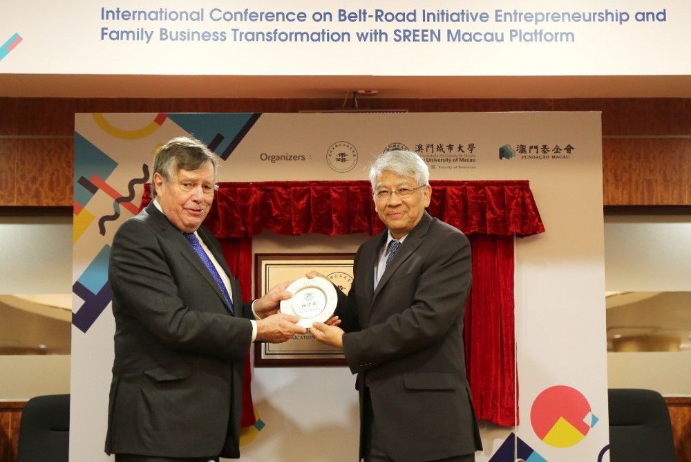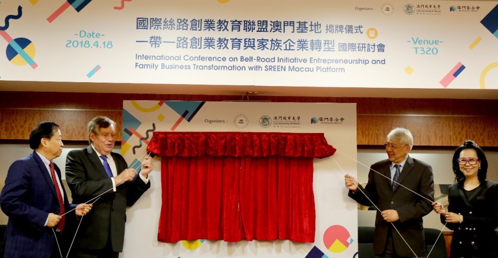 On April 18, 2018, the opening ceremony of the International Conference “Belt and Road Initiative--Entrepreneurship Education and Family Business Transformation” was held at the City University of Macau. The seminar focused on topics including entrepreneurship education along the Belt and Road, international innovation and entrepreneurship development, corporate sustainable development, and family business transformation. Invited domestic and foreign experts and scholars conducted in-depth discussions and published a conference. The guests included: Professor Zhang Shuguang, Rector of the City University of Macau; Professor Kong Fanqing, Vice Rector; Professor Andrew Lock, Chairman of the AMBA International Accreditation Advisory Board and President of the International Silk Road Entrepreneurship Education Alliance; Professor Wang Chongming, AMBA International Accreditation Association China Regional Director, Senior Professor of Zhejiang University, and Director of the Global Entrepreneurship Research Center, Zhejiang University; Professor Eva Khong, Associate Dean of the Faculty of Business of City University of Macau; Professor Wu Yao, Executive Vice Dean of the Faculty of Urban Management and Studies of City University of Macau; Professor Gavin Chau, Executive Associate Dean of the Faculty of International Tourism and Management of City University of Macau; Mr. Robert Chan, Secretary General of the Council of the City University of Macau; Associate Professor Zhou Ping, Director of the “Belt and Road” Research Center of Macau; Professor Tiziano Vescovi, Full Professor of the Department of Management, Ca’ Foscari University of Veniec; Professor Andrew Godley, Head of the School of Leadership, Organisations and Behaviour, Henley Business School, and Academic Director for the Henley Centre for Entrepreneurship; Professor Tadao Onaka, Professor in the Department of Business Administration, Nagoya University of Commerce & Business; Professor Fan Zheng, Dean of the School of Business Management, Shanghai International Studies University; Professor José Alves, Dean of Business School, University of St. Joseph, Macau; Professor Francisco B. S. Jose Leandro, Assistant Professor/ Coordinator for the Institute of Social and Legal Studies, University of St. Joseph, Macau; Mr. Cui Tianli, President of the Macao Youth Summit; Mr. He Jinglin of Anshi Group Co., Ltd.; and teachers from the City University of Macau.