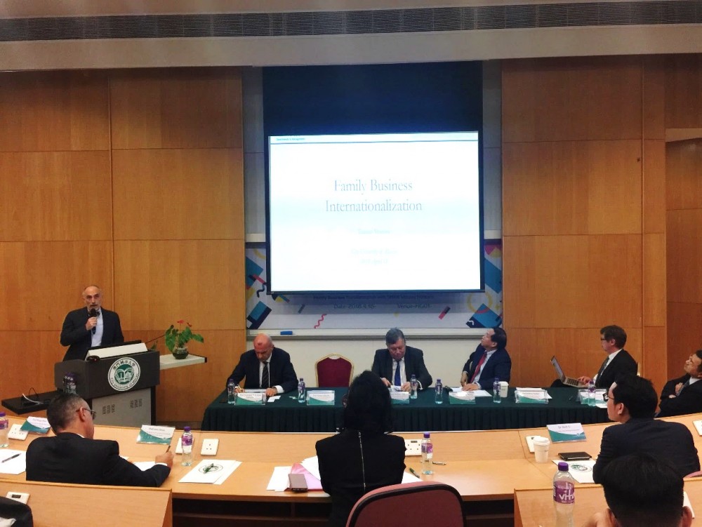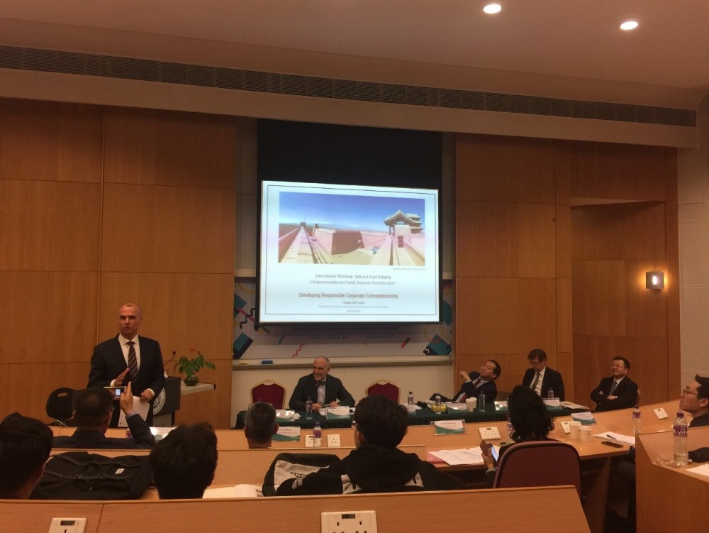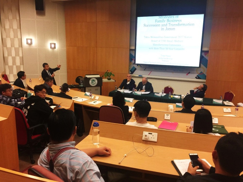 On April 18th, at 2:30PM, the “One Belt One Road International Education Conference on Entrepreneurship Education and Family Business Transformation” took place in Room HG01 of City University of Macau. The conference was hosted by Professor Wang Chongming. The speakers included Professor Andrew Godley, Professor Tiziano Vescovi, Professor Tadao Onaka, Professors Francisco BS Jose Leandro, and Professor Eva Khong, who delivered keynote speeches on the transformation of entrepreneurship education and family business along the Belt and Road. Professor Andrew Godley highlighted the favorable situation for the combination of entrepreneurship education and policy, stating that as a strategic move to promote sustainable economic development under the “new normal,” the One Belt One Road Business Education will become an important and vital force for national innovation and development. Professor Tiziano Vescovi focused on the difficulties faced by family businesses in coping with challenges such as international transformation and inheritance, and proposed solutions for these problems. Professor Tadao Onaka has studied the results of family businesses over many years, based on the findings of a survey of thousands of family companies in Tokyo, Japan. Professor Francisco B. S. Jose Leandro analyzed the entrepreneurial and business models of responsible companies and explained the impact of business models on family businesses. Professor Eva Khong discussed opportunities and opportunities for the transformation of family businesses in China and Hong Kong. Professor Lock summed up the views of the meeting and proposed the fundamentals of entrepreneurship education, highlighting the link between family businesses and the One Belt One Road policy. At the conference, students actively asked questions. Professor Wang Chongming and other speakers answered the students individually. The atmosphere was highly conducive to academic exchange. All looked forward to the forthcoming publication of Professor Wang Chongming’s new book on The Belt-Road Initiative and Entrepreneurship Competence, which will incorporate findings from the meeting.