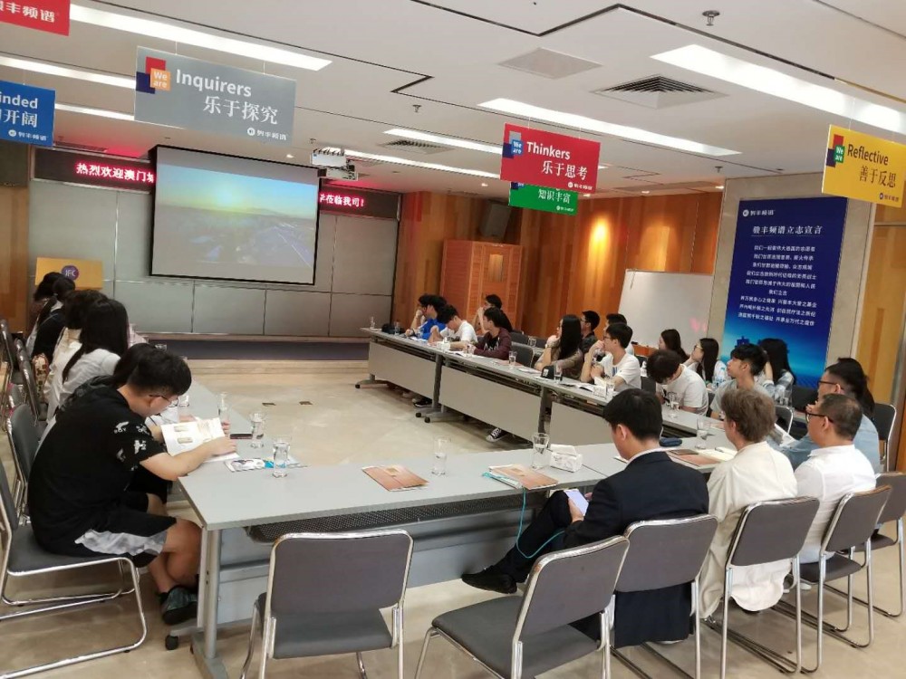 The students first visited Guangzhou Yuan Building, where they were welcomed by Dr. Lin Shaohan, Secretary of the Hongdaxingye Group. Dr. Lin showed the students Guangdong Plastics Exchange and The Soil herbarium. The Plastics Exchange is the first plastic trading platform in South China that integrates a trading center, a logistics center and an information center. The Soil herbarium shows the results of the collection and scientific research of the group. It also has a special greenhouse to test plant growth. According to reports, the Herbarium promotes the development of environmental protection in China by analyzing the characteristics of China's soil. During the visit, the students exchanged ideas with the representative of the sample museum to learn more about the operation of the Guangdong Plastic Exchange.