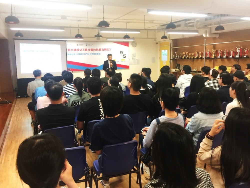 Yu Jian, the General Manager, used Mr. Ma Yun's words to highlight the challenges facing the banking industry: “If banking does not change, we will change banking”. Nowadays, non-banking institutions such as WeChat and Alipay have already gone far beyond banking institutions, and Silicon Valley is grabbing Wall Street's business. This is a common dilemma faced by the entire global banking industry. Traditional banking services are no longer satisfied with users seeking a faster customer experience in terms of convenience and versatility. In order to gain a foothold in cross-border competition, the banking industry must undergo a variety of transformations, in such areas as network intelligence strategies, customer experience, mobile priority strategies, and blockchain. Mr. Yu Jian focused on introducing the various transformations. At the same time, he also said that Big Data has become the core element in competitiveness. Financial data is one of the largest gold mines in the world today, combined with artificial intelligence and transformation strategies in order to combat the cross-border competition facing the banking industry. Yu Jian, the general manager, explained the enlightenment and opportunities of Macao in the reform and transformation of Macao's local banking industry. This triggered great interest among the students present, who responded enthusiastically.