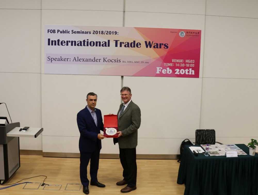 On February 20th, FOB has invited Professor Alexander Kocsis as our distinguished guest to visit City University of Macau and has made a public lecture at HG03 in the afternoon. Professor José C. Alves, the Dean of Faculty of Business, Professor Roberts, the IBC Coordinator and professors from Faculty of Business attended the seminar. On behalf of FOB, Dean José C. Alves made the welcome speech and presented the souvenir to the distinguished guest speaker, Professor Kocsis.
