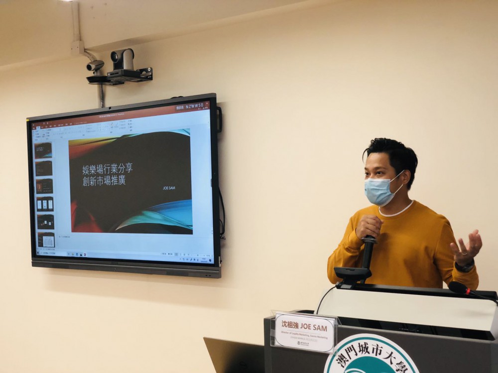 On the morning of September 18th, FOB invited JOE SAM, Director of the Loyalty Membership Department of Okada Casino Manila, to share the topic of "Casino Marketing and Innovation" (Innovation Management Industry Sharing) with students.