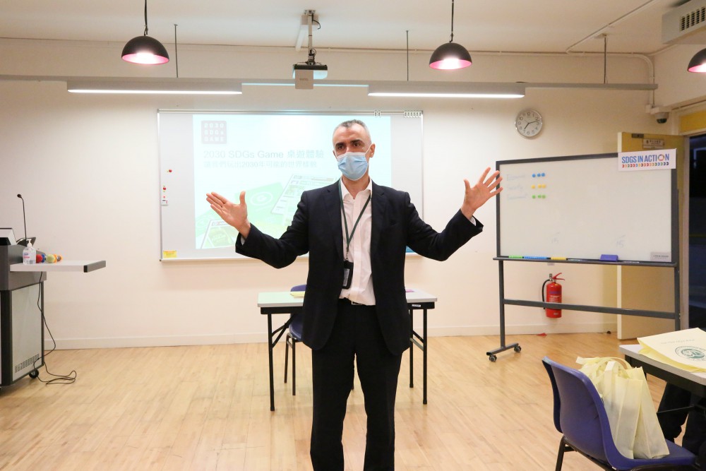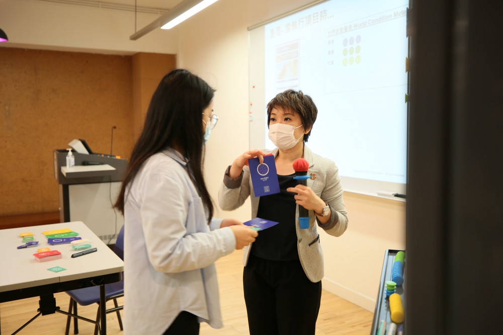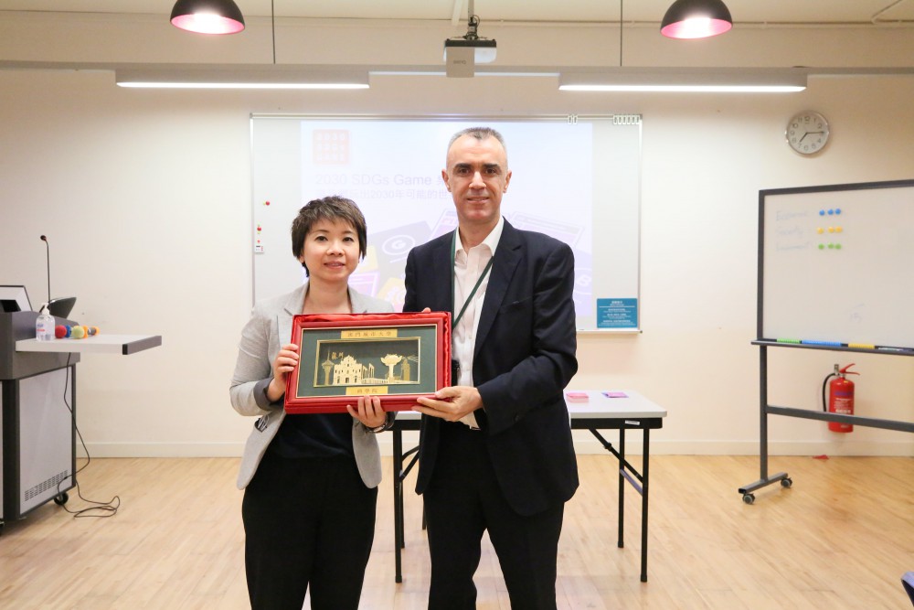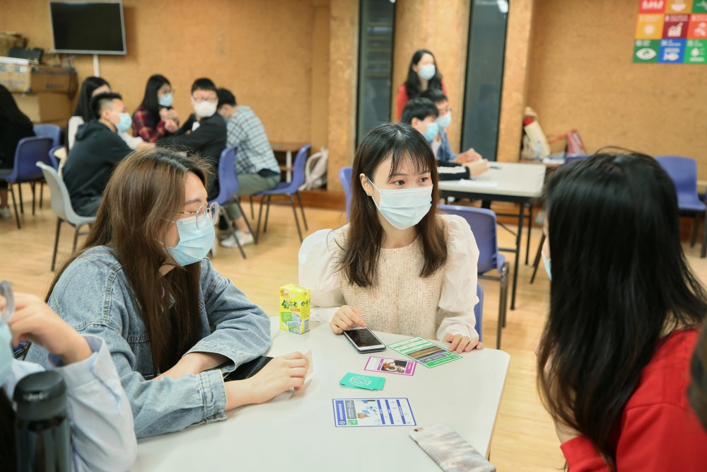 The workshop invited Ms. Ruby O, who is the founder of the Society of Food & Environment Health (Macao), as the guest speaker. As the first registered trainer to promote the 2030 SDGs Game to Macao, Ms. Ruby O explained the rule of the game to students through the exchange of time and money by achieving certain goals, such as acquiring wealth, enjoying leisure and environmental conservation. This 2030 SDGs Game could simulate to take students as real world into the year 2030, thus students have a direct experience of participating in co-creating a sustainable world and have a deeper understand on this topic and motive students to think and take certain actions in the real world.