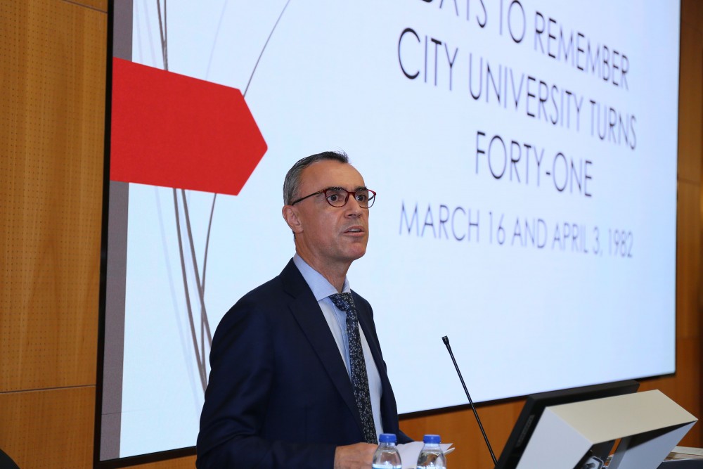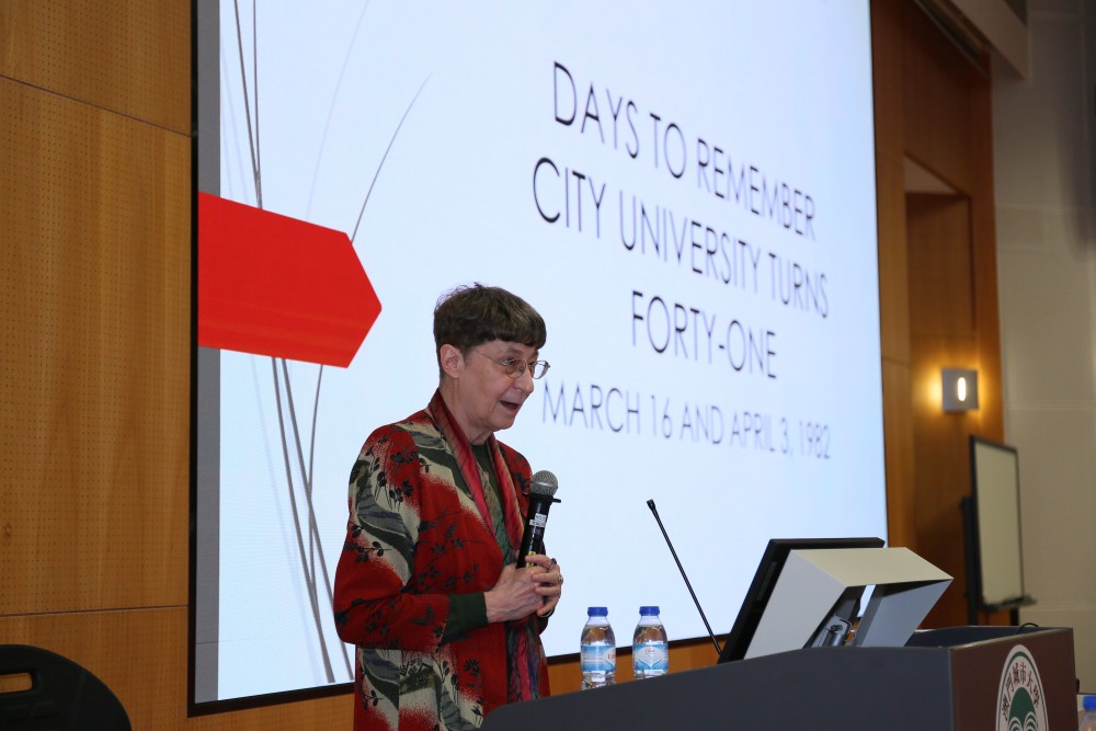 To celebrate the coming 41st Anniversary of the City University of Macau, historian and Associate Professor of Business Prof Priscilla Roberts delivered a public lecture titled “Forty Years on Celebration March 16, 1982: A Day to Remember” at Ho Yin Convention Centre, Taipa campus. The lecture marked the tree planting activity on March 16, 1982, at the University of East Asia (UEA), the precedence of City University of Macau (CityU Macau).