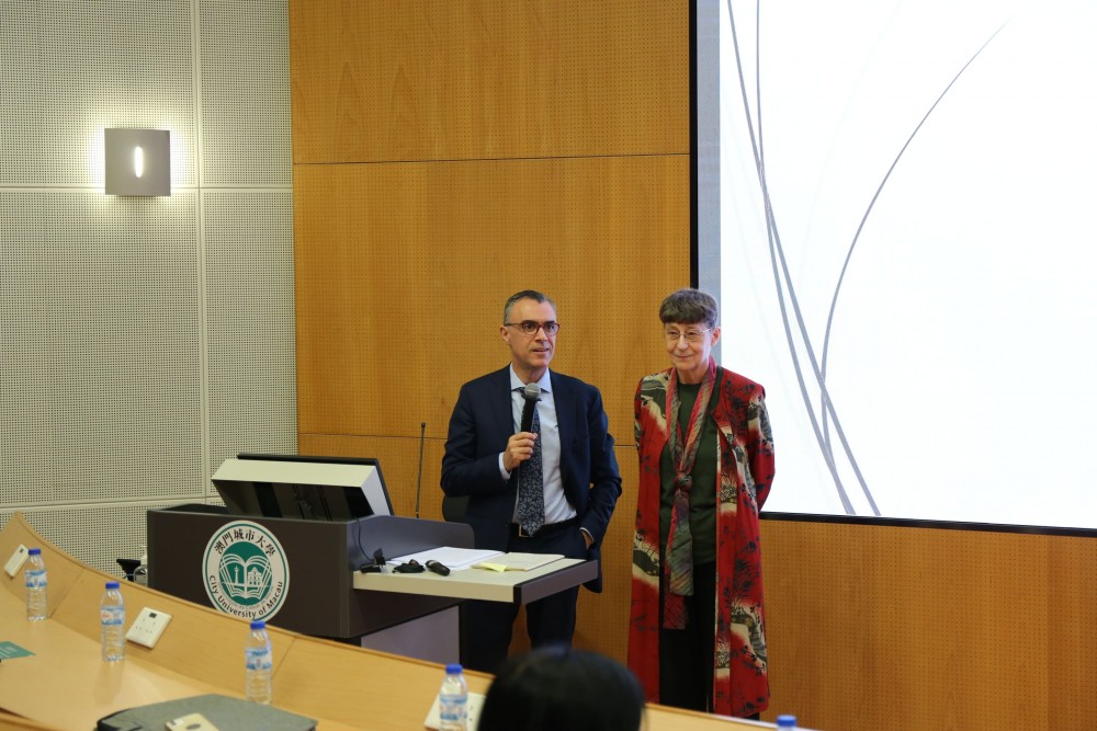 Many staff and students from City University of Macau and representatives of other local institutions were present in person. Other guests from Macao, Hong Kong, China, Japan, and Britain attended remotely.