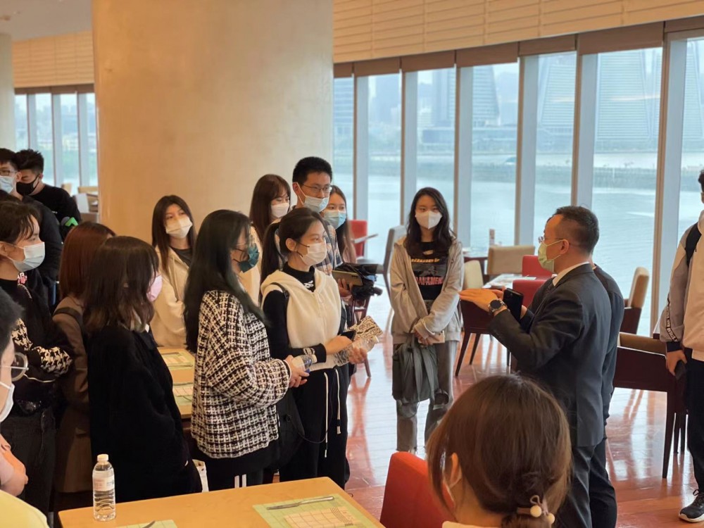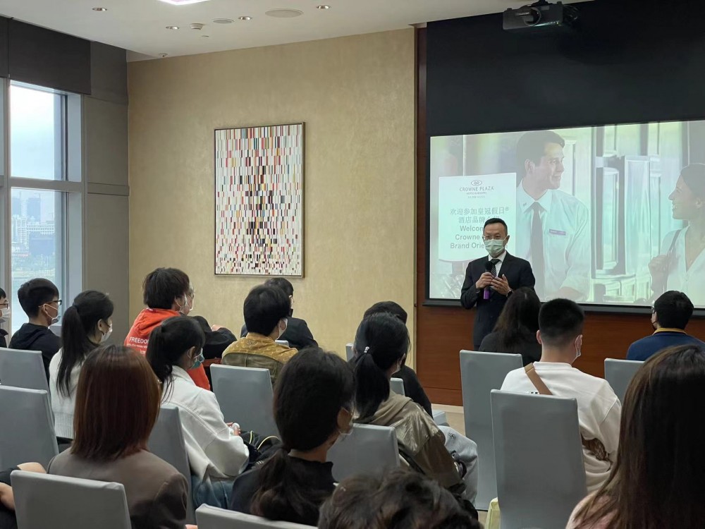 The Faculty of Business (FOB) of City University of Macau (澳門城市大學商學院) is committed to integrating theory and practice in teaching and encouraging students to take the initiative to understand the development of Macau enterprises. On March 25, FOB organzised the Field Visit to Crowne Plaza Macau. Mr. Fred Wu, Human Resources Director of Crowne Plaza Macau, was invited to talk to the students about the hotel's brand philosophy and service framework, and to introduce the hotel's services for efficient business travel.