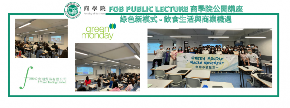 On 11 and 13 April 2022, Mr. Winter Un (Green Monday Ambassador) and Mr. Jack Yu (the person in charge of Food Trend Trading Limited), gave a seminar to bachelor students in BA302 Business Ethics titled "Green New Model, Lifestyle, and Business Opportunity". The presentation was divided into two parts. First, Mr. Winter Un, who spoke at the first section of the "Green Food and Environment", emphasized the need to make minor changes in personal diet habits, such as being a vegetarian on every Monday, to help alleviate climate change and actively promote a sustainable global environment. Second, Mr. Jack Yu shared his business development path and extensive practical experience for the "sustainable business model". They meticulously prepared reflection and interaction sessions to help students comprehend how environmental protection can start with small changes in daily life, as well as the value and potential of a sustainable business model. Students also actively engaged in the seminar by asking questions and presenting their thoughts in different groups.