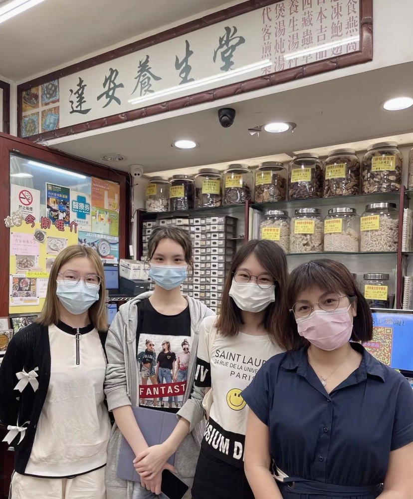 TAT ON Chinese Medicine Clinic has been in operation since 1988, with a history of more than 30 years. It mainly sells all kinds of spices and Chinese medicine grinding, and operates as a family business, mainly targeting the local people in Macau. There are acupuncture, bruises and bone injuries, traditional Chinese medicine soup bags, valet decoction, cupping and other services. Currently registered TCM practitioners are Mr. Gong Pei Ming and Mrs. Liao Shao Feng. The students visited Mrs. Liao, who has been working in TAT ON since 2012.