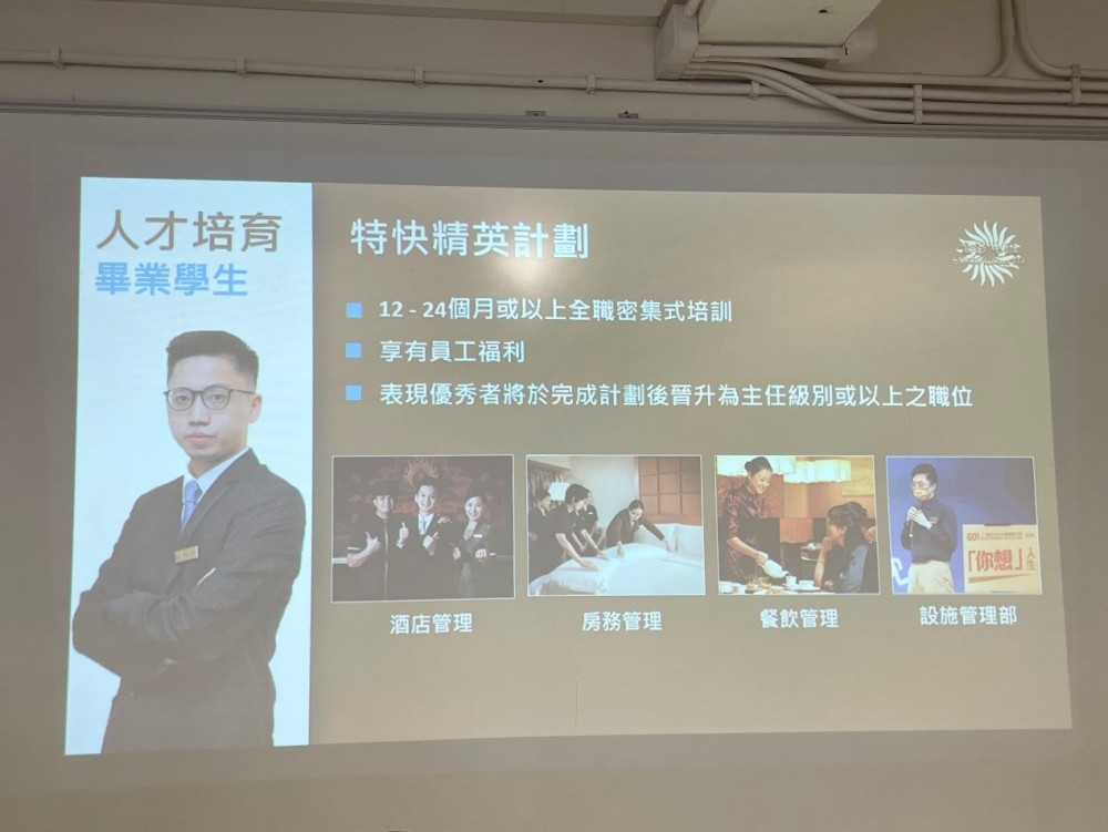 Through the guest speaker’s sharing, the students not only had an eye-opening experience on the scale of the company's employees, but also learned how the company can maintain its competitiveness through different measures of attracting, retaining, cultivating and developing talents from the practical perspective of Human Resources management. The students also learned the scale of development and diversified business of the company through photos and videos. Through the exchange with the guests, students also learned the recruitment criteria of the company and realized the importance of combining the future career planning with interests and economic environments.