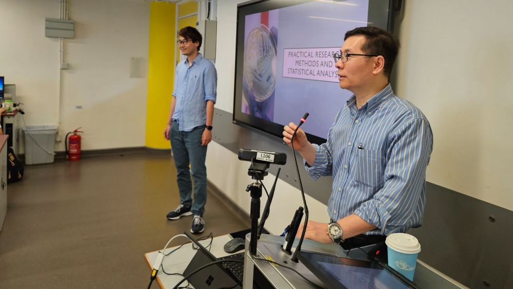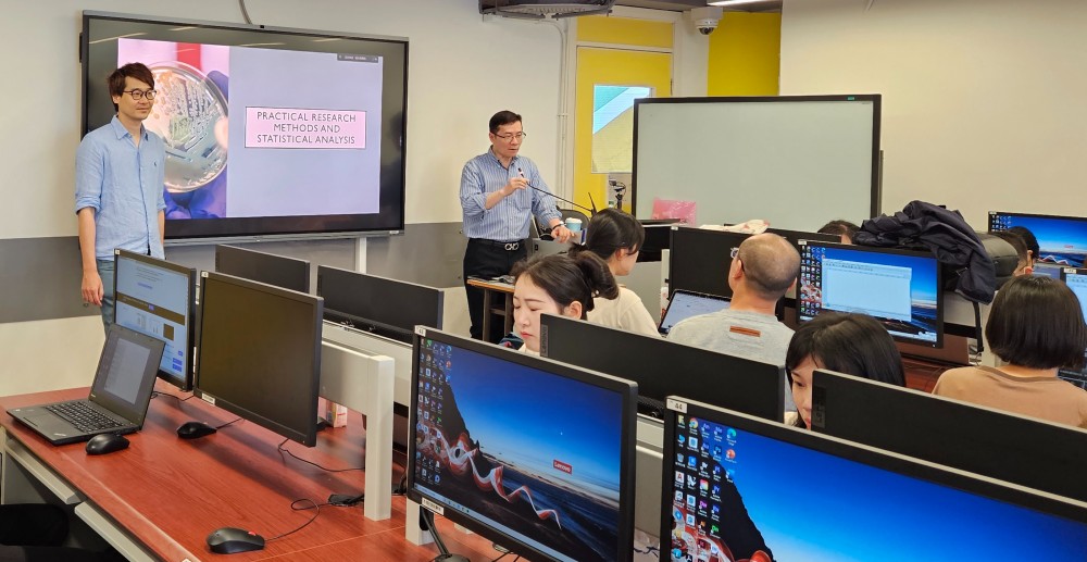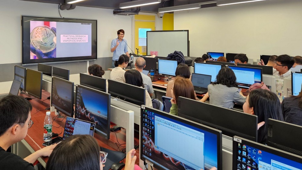 In order to enhance thesis writing skills and facilitate scientific research achievements of postgraduate students, Faculty of Business and Asia-Pacific Business Research Centre conducted an offline workshop on 11 May, lectured by Dr. Tang Yuk Ming from the Hong Kong Polytechnic University (PolyU). The topic “PRACTICAL RESEARCH METHODS AND STATISTICAL ANALYSIS” introduced applications on SPSS.