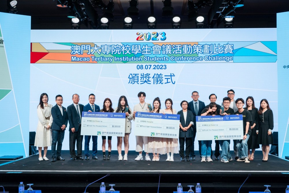 The competition aims to provide students with the opportunity to develop innovative thinking, inject fresh and unique concept elements into the Macao exhibition, and stimulate students to apply what they have learned, strengthen organizational and analytical skills, enhance team spirit, and jointly make viable business solutions. Besides the first place, the team composed of Yitong Xu, Pei Yan, Yutao Yan and Yueyue Jiang won the Best Team Cooperation Award and the Best Costume Award as well. It will continue to compete for “2023 AFECA Asia MICE Youth Challenge” on behalf of Macau.