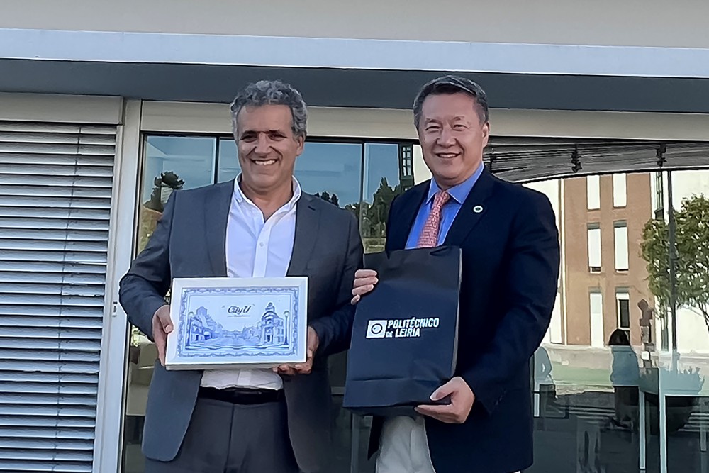 Rector Jun Liu and his delegation had a friendly exchange with representatives from Polytechnic Institute of Leiria (IPL) on the same day regarding cooperation on talent development, academic discipline development, and mutual visits between faculties and students, and reached preliminary cooperation intentions. Nuno Almeida, Pro-president of IPL, and the Director of the International Mobility and Cooperation Office attended the discussion.