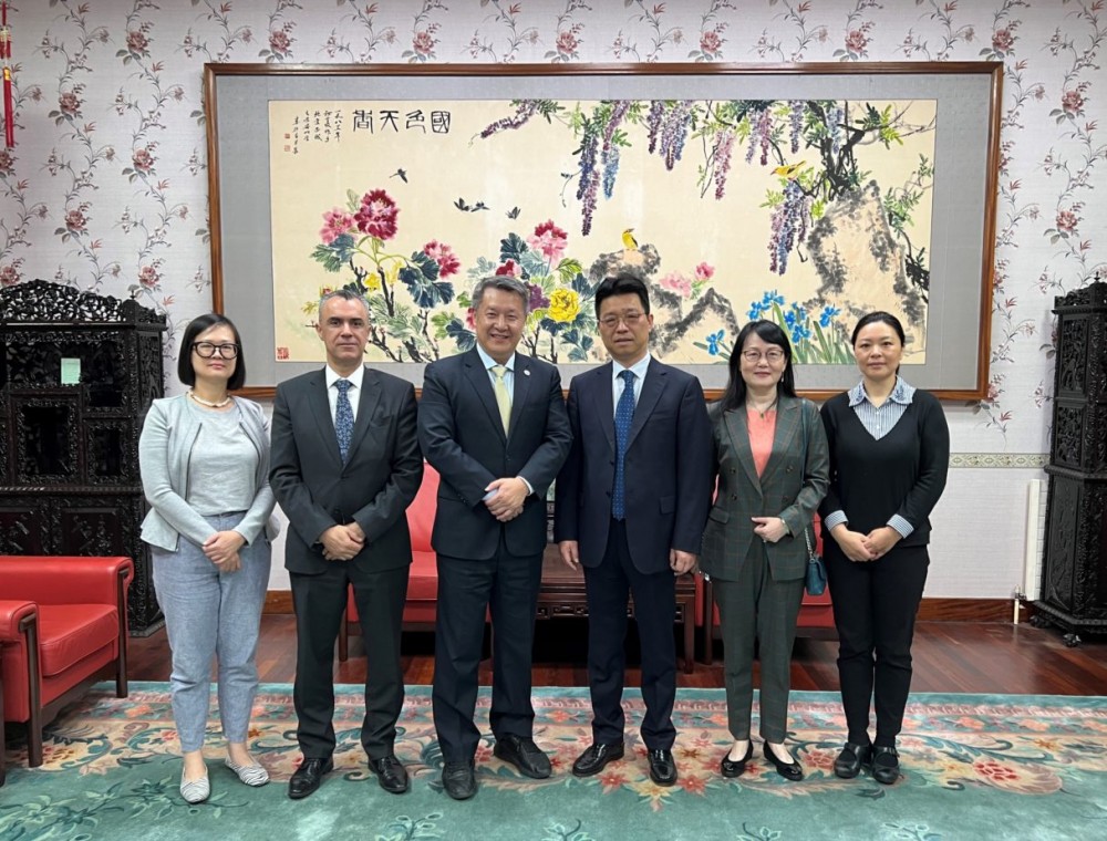 During the visit, Rector Jun Liu and his delegation also visited the Embassy of the People’s Republic of China in the United Kingdom of Great Britain and Northern Ireland, where they received a warm reception from Minister Zhao Fei. The two sides held discussions on international education exchange and cooperation, as well as ways to enhance the international perspective of Macao's teachers and students. Minister Zhao spoke highly of the achievements of CityU in recent years and provided an introduction to the history, culture, and development of higher education in the United Kingdom. He expressed the embassy's support for the exchanges between CityU and British universities and its continuous efforts to enhance the internationalization of higher education in Macao.