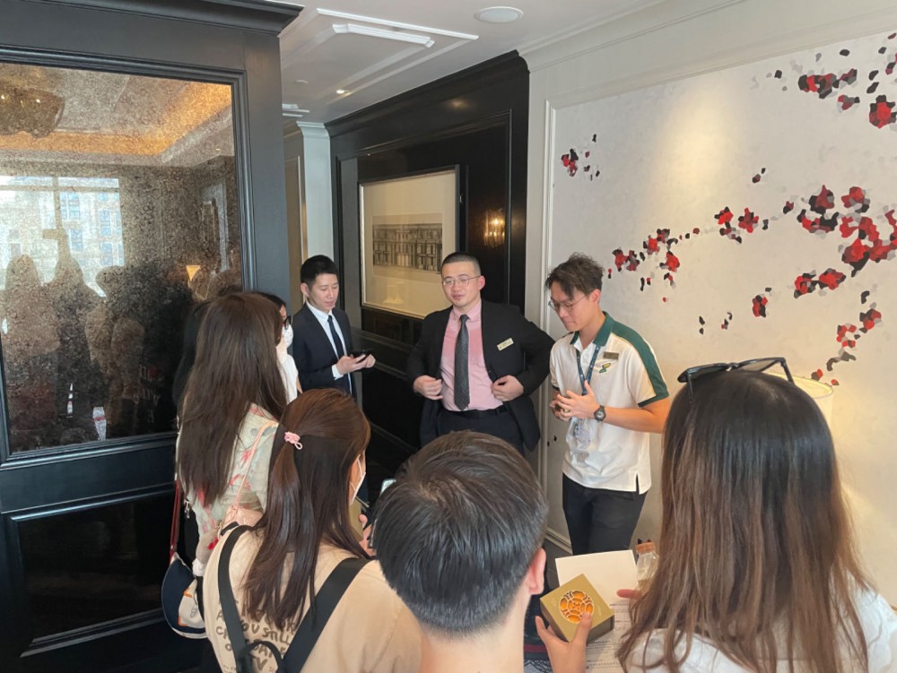 On 5 October, under the leadership of Assistant Prof. Tiffany C. H. Leung and Assistant Prof. Limeng Yu, all the MBA Class H students visited the Grand Lisboa Palace Resort. Under the guidance of the staff, our students got to know the distribution and characteristics of the hotel, and had a deeper understanding of Macau's tourism and hotel industry.