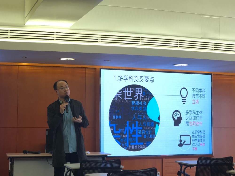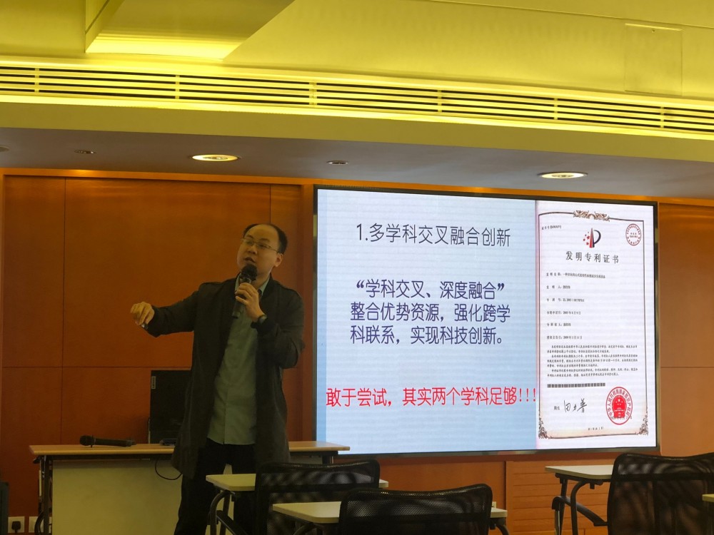 Associate Prof. Guo explained the key points, rules and paradigms of disciplinary crossing and integration, respectively. Firstly, he explained the difference and connection between "disciplinary crossing" and "interdisciplinary science" as well as "discipline" and "science". Then he emphasized 3 key points of disciplinary crossing and integration: "problem-oriented", "breaking through the thinking pattern", "broadening one's cognition", drawing out its connotation. He also listed three rules and combined his experience to help audience understand how "theory transfer, using learnings for reference by each other, object transfer." work. Finally, he summarized three classic paradigms: multidisciplinary, interdisciplinary and trans-disciplinary crossing, encouraging students to have more conversations with those of other majors, understand their way of thinking, audit classes of other majors, and apply learnings to solve acute issues in their own disciplines. He believed that integrating key points and finding connections between various disciplines can achieve innovation eventually.