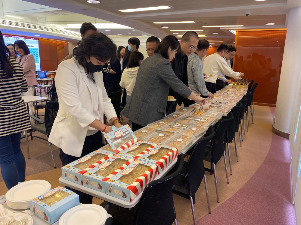 Following the introductions, students and professors engaged in discussions according to their respective research areas within their assigned groups. The Faculty of Business provided a diverse selection of food and beverages, creating a relaxed and enjoyable atmosphere. As students and professors savored the food, they delved into profound academic discussions, sharing and exploring their individual research interests.