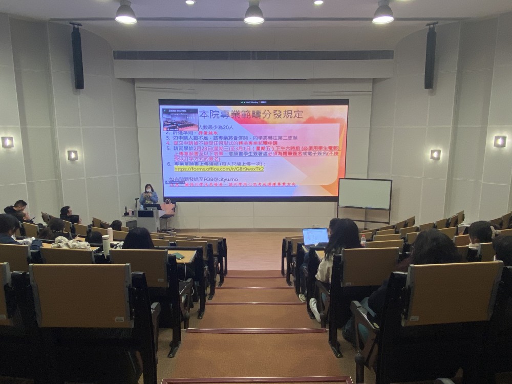 The 2022-2023 BBA Professional Briefing was Successfully Held on January 24. The session was hosted by Assistant Professor Tiffany Cheng Han Leung, Course Coordinator of BBA Programme, and presented by Assistant Professor Farzad Sabetzadeh, Course Coordinator of IBC Programme, Assistant Professor Wei-Nien Chen, Assistant Professor Kaidong Yu, Assistant Professor Zucheng Zhao, and Assistant Professor Peixin Zuo.