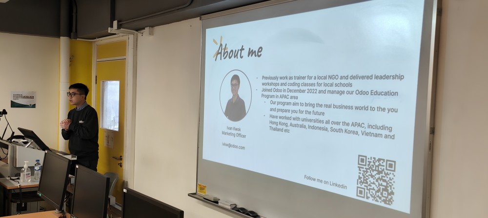 On March 4th, the FOB invited Mr. Ivan Kwok, the Marketing Officer of the Odoo Education Program, to deliver two exciting workshops to the IBC year 1 students. The purpose of these workshops was to deepen students' understanding of the importance of digital transformation for businesses and the application of business software.