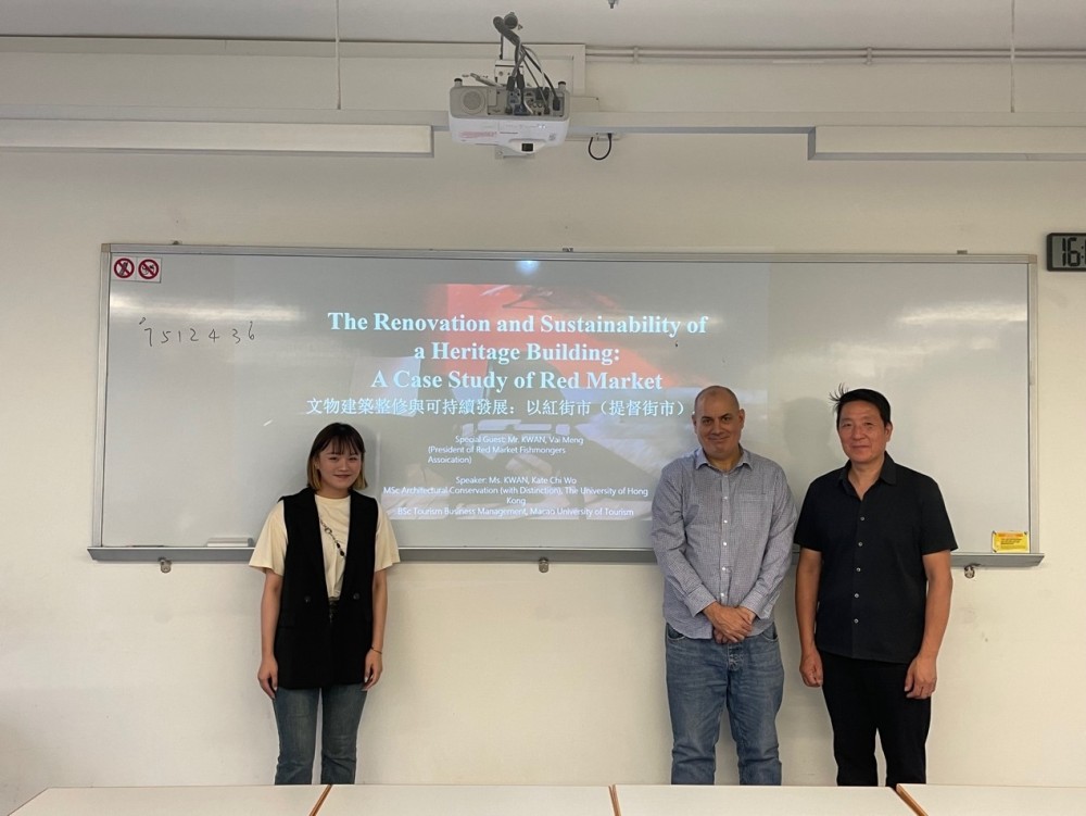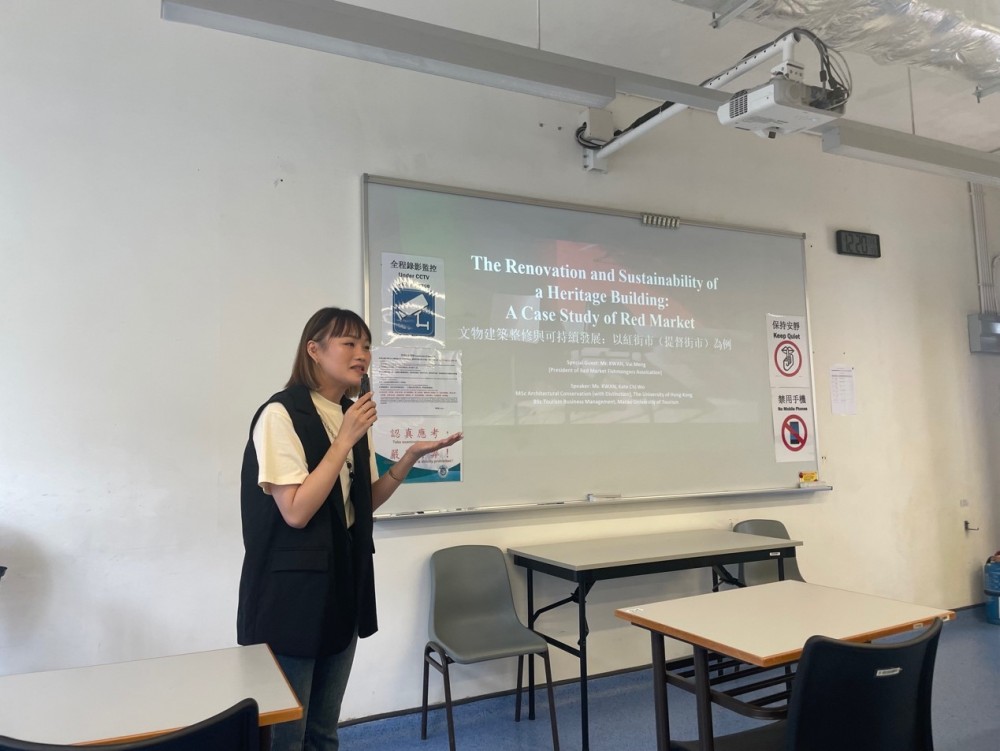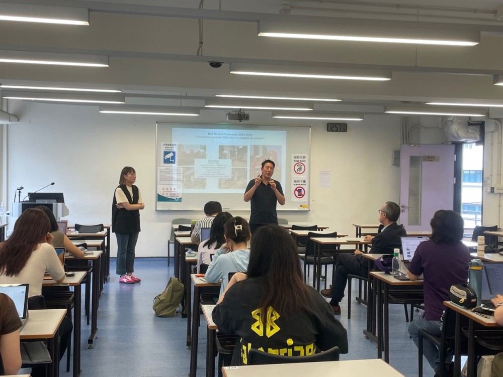 On May 9th, the FOB invited Mr. Vai Meng KWAN, the President of the Red Market Fishmongers Association, and Ms. Kate Kwan, a master's degree holder in Architectural Conservation (with Distinction) at the University of Hong Kong, to deliver a brilliant lecture titled "The Renovation and Sustainability of a Heritage Building: A Case Study of Red Market" for the DBA students of Class A and B.