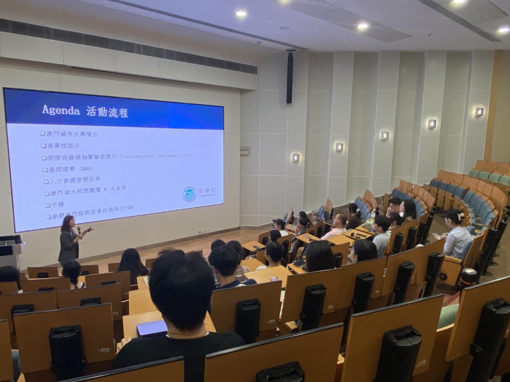 On August 5, the Faculty was honored to have a visiting group from China Agricultural University. This talk was delivered by Seah Wei Wei, Senior Lecturer of the Faculty of Business, with the aim of providing the students with a deeper understanding of the City University of Macau and the programmes offered by the Faculty of Business (FOB).