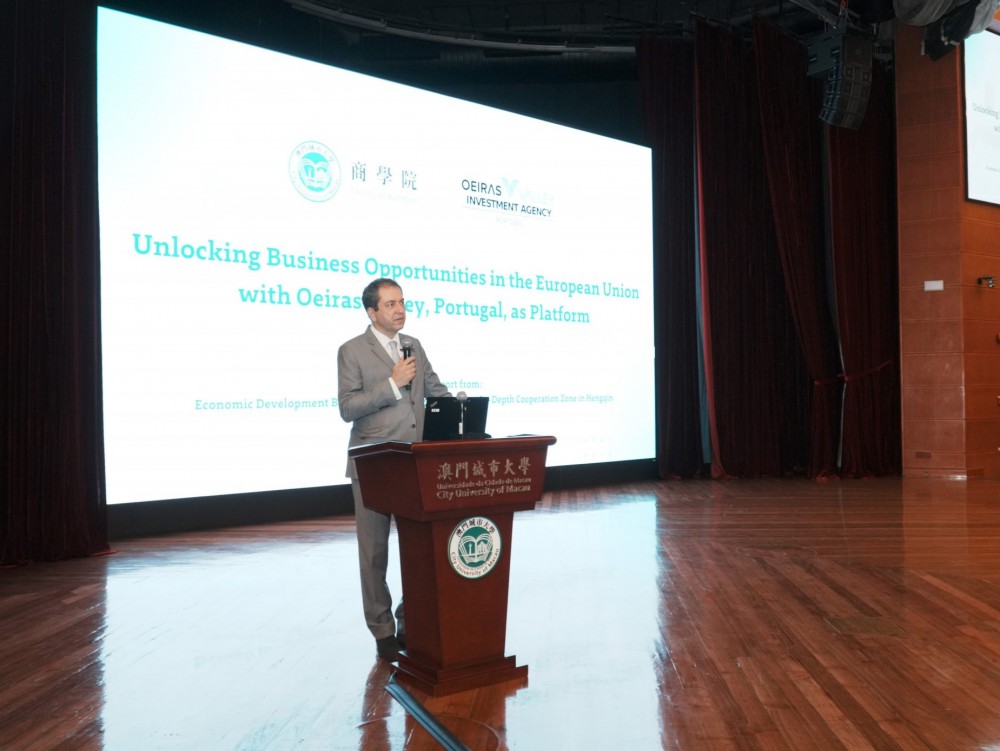 From October 18 to 19, 2024, the Faculty of Business (FOB) at City University of Macau, in collaboration with the Oeiras Valley Investment Agency (OVIA) from Portugal, successfully held a two-day event themed “Unlocking Business Opportunities in the European Union.” The first day of the event took place at the Cultural Centre, Taipa Campus, while the second day was held in the Guangdong-Macao In-Depth Cooperation Zone in Hengqin.