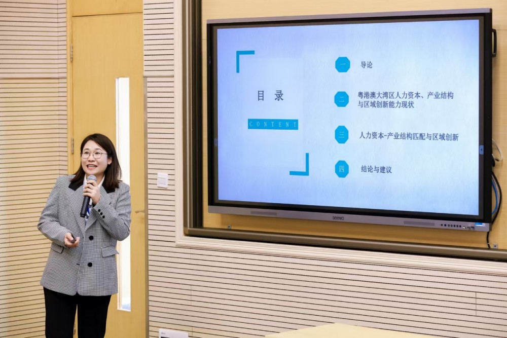 Associate Professor Tingyue Kuang shared her research report titled “The impact of the matching degree between human capital and industrial structure on regional innovation capability: A case study of the Guangdong-Hong Kong-Macao Greater Bay Area” during the “Real Number Integration and New Quality Productivity” discussion. The report highlighted that as the matching degree between human capital and industry structure in the Greater Bay Area strengthens, the region's innovation capability is gradually improving. To better promote regional innovation and achieve high-quality economic development, the government should formulate corresponding support policies to facilitate better integration among the three regions.