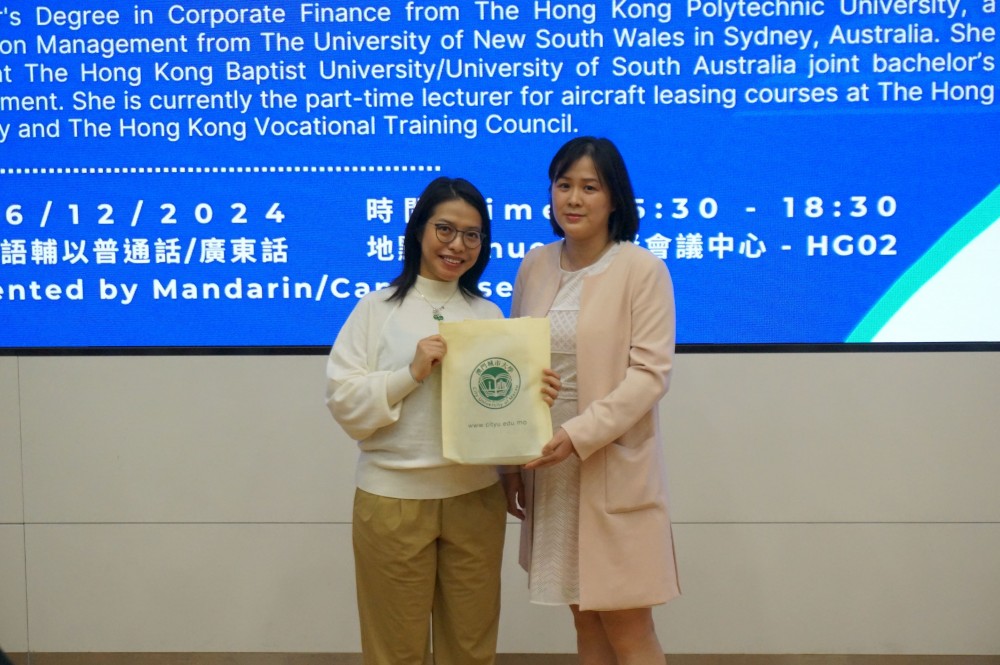 The seminar focused on the theme "The Development of Aircraft Leasing in Hong Kong in the Post COVID-19 Era," featuring Ms. Karen Wong, an aircraft leasing expert with over ten years of industry experience, as the keynote speaker. Ms. Wong currently serves as the Head of Aircraft Leasing at Greater Bay Airlines, overseeing financing and leasing transactions for the 737 fleet. She has held key positions at renowned firms such as Pricewaterhouse Coopers, VMS Investment Group, Cathay Dragon (formerly Dragonair), and Cathay Pacific Airways, accumulating extensive experience in aircraft financing, leasing, and structured finance in the aviation sector.
