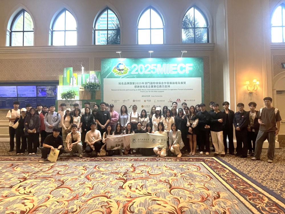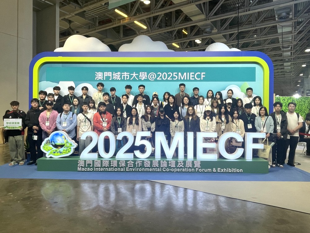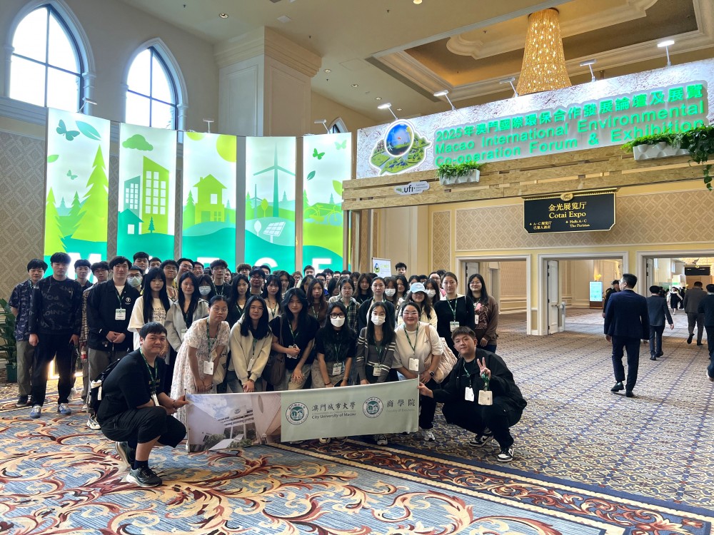 On March 27, in order to enhance students’ understanding of the concept of green innovation and sustainable development, more than a hundred BBA students from Faculty of Business, the City University of Macau, led by Associate Professor Tiffany Cheng Han Leung and Assistant Professor Wai Nga Leong, participated in the 2025 Macao International Environmental Co-operation Forum & Exhibition (2025 MIECF) hosted by the Macao SAR Government.