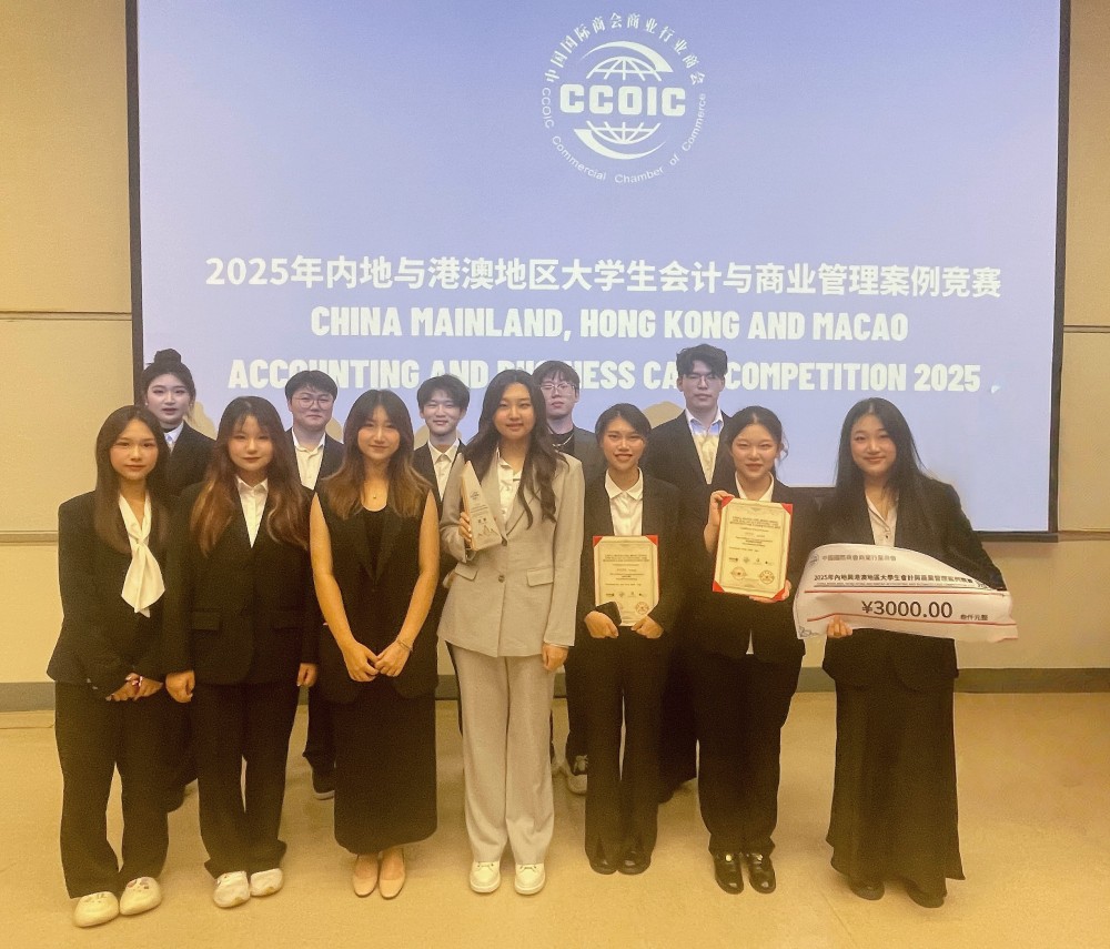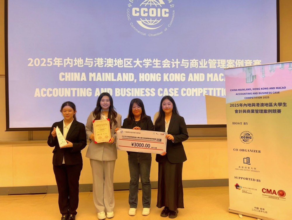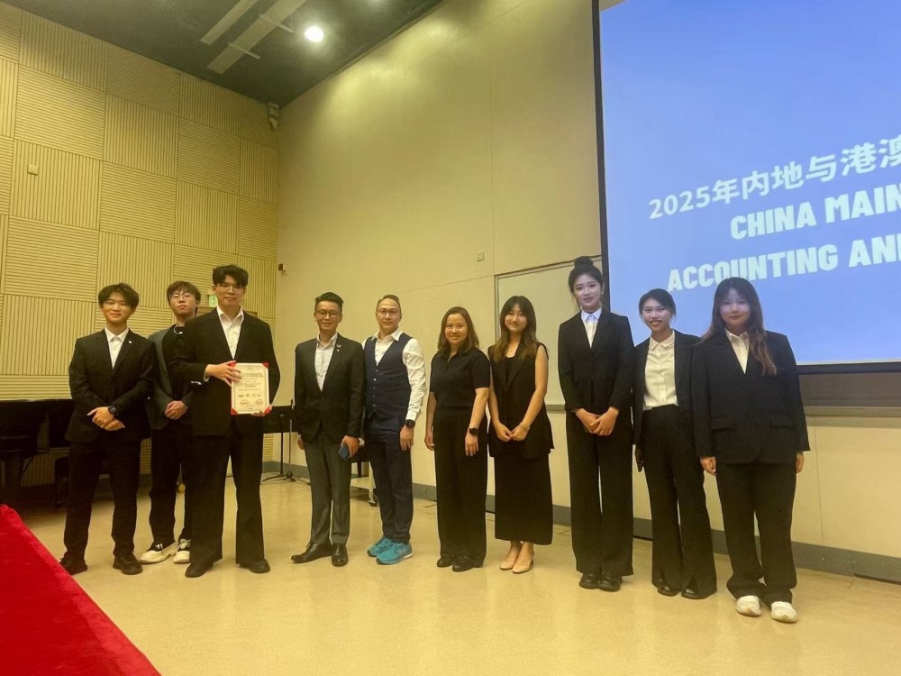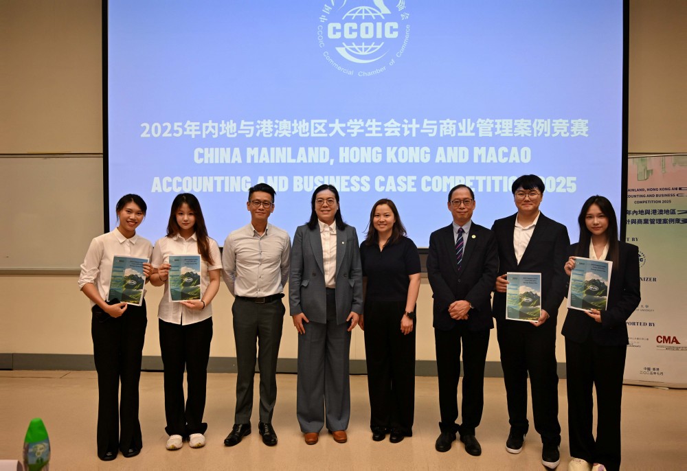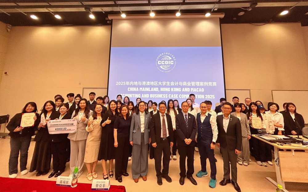 The "2025 China Mainland, Hong Kong, and Macao Accounting and Business Case Competition," organized by the China Chamber of International Commerce (CCOIC) and Hong Kong Baptist University (HKBU), and supported by the Institute of Management Accountants (IMA) and the Institute of Public Accountants (IPA Group), was successfully held at Hong Kong Baptist University. Nine teams from various universities in Mainland China and the Macao region competed in this prestigious event. The Faculty of Business (FOB) of City University of Macau (CityU) fielded several student teams, ultimately winning the championship. The team, comprising Jiayang Zong, Xinwen Chang, and Xinran Ren from the Bachelor of Business Administration's International Business Cohort Programme, emerged victorious.