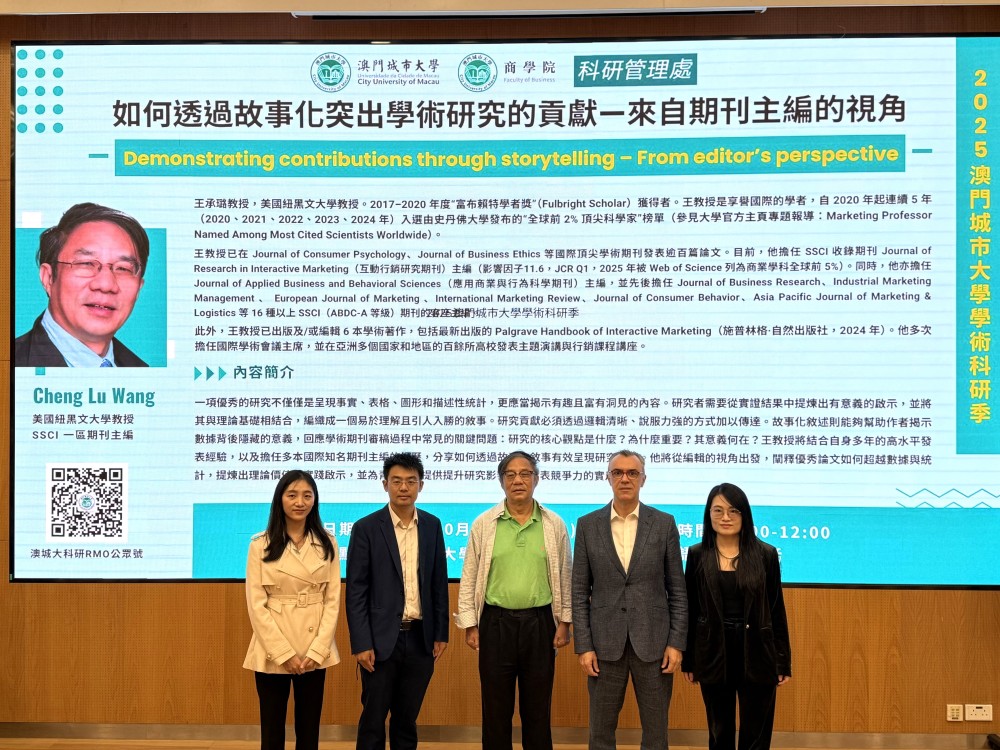 To enhance international academic exchange and strengthen high-quality research outputs, the Faculty of Business at the City University of Macau, in collaboration with the Research Management Office, successfully held a special lecture on the morning of October 28, 2025, at Taipa Campus.