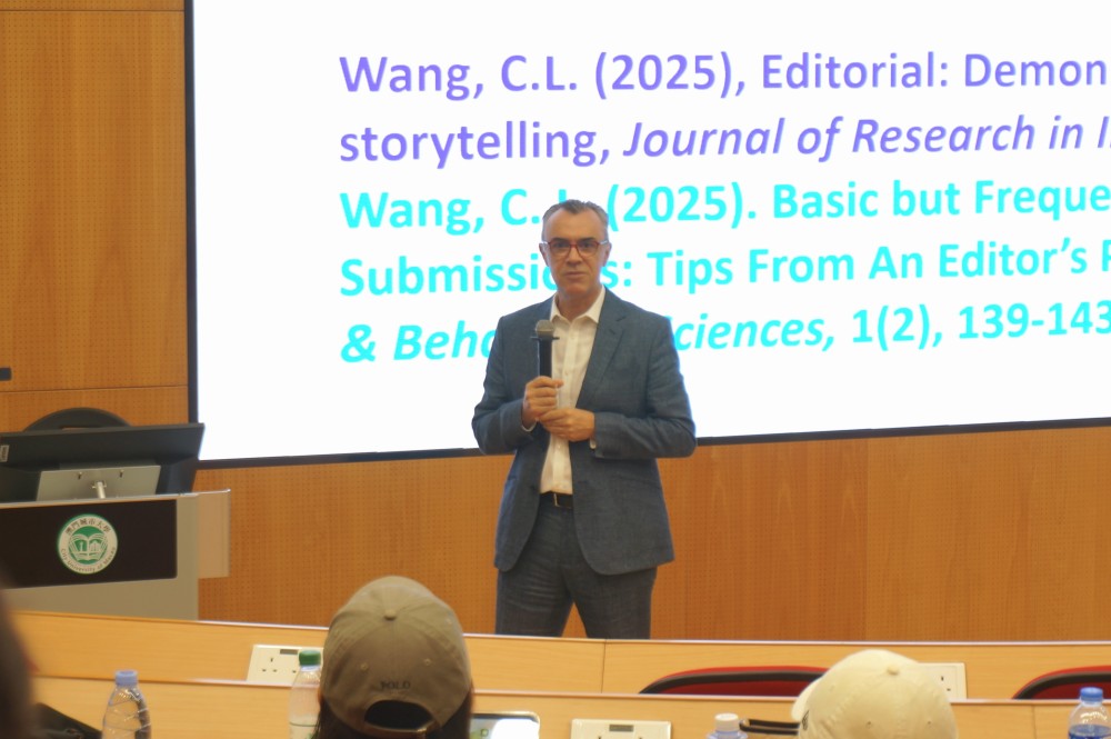 The theme of the lecture was “Demonstrating Contributions through Storytelling – From the Editor’s Perspective,” featuring Prof. Cheng Lu Wang, Editor-in-Chief of an SSCI Q1 journal and a professor at the University of New Haven. The event attracted a large number of faculty members, doctoral students, master's students, and undergraduates.