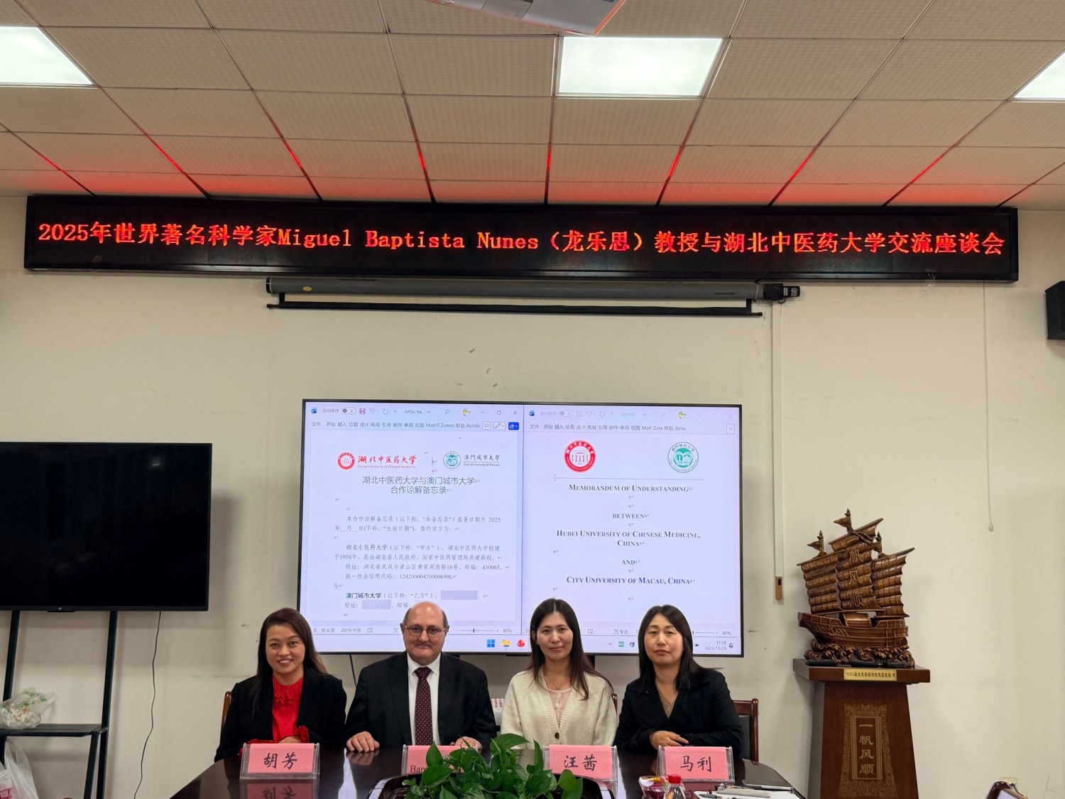 Professor Miguel Baptista Nunes, doctoral supervisor from the Faculty of Business at City University of Macau, was recently invited to participate in the "World-Renowned Scientists Lecture Program in Hubei," where he delivered a specialized academic lecture at Hubei University of Chinese Medicine.