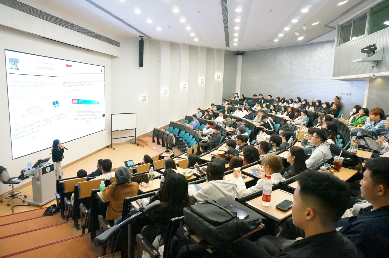 In the Q&A session that followed, students demonstrated great enthusiasm, actively posing questions to Dr. Xu regarding the research content and its practical applications in the workplace. Dr. Xu addressed each question in detail and engaged in in-depth academic exchange and intellectual discussion with the students and Professor Jiashun Huang, Associate Dean of the Faculty. After the Q&A, Dr. Xu also recommended two professional books, The Leadership Pipeline and Give and Take, based on her research field and career development expertise, offering valuable reading guidance for the students’ further learning and research.