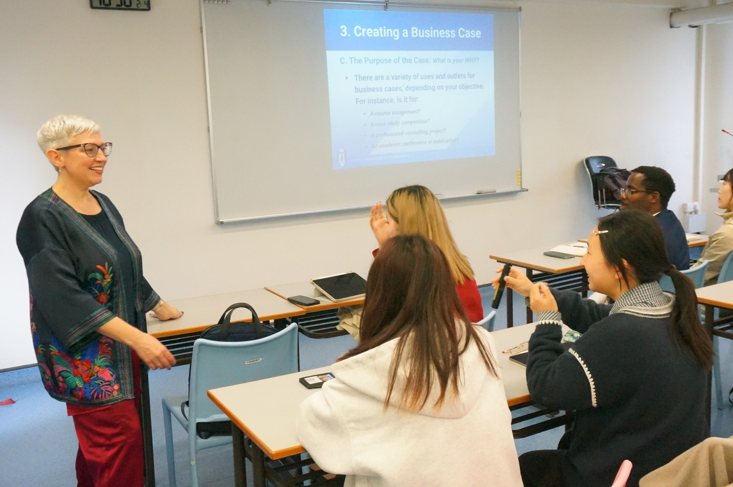 To further deepen the connotation of business education and enhance the academic research and practical application capabilities of faculty and students, the Faculty of Business at City University of Macau invited Dr. SINÉAD G. RUANE (https://www.ccsu.edu/person/sinead-g-ruane), Associate Professor of Management and Organization at the School of Business of Central Connecticut State University, to the Faculty on February 4. Two specialized workshops themed "How to Create Your Own Business Case Study" were conducted for students and faculty respectively. The workshop also celebrates the World Case Teaching Day at the Faculty of Business (https://www.worldcaseteachingday.org/). This event aimed to promote international academic exchange, enrich teaching methodologies and research tools, and provide a cross-cultural learning and collaboration platform for teachers and students.