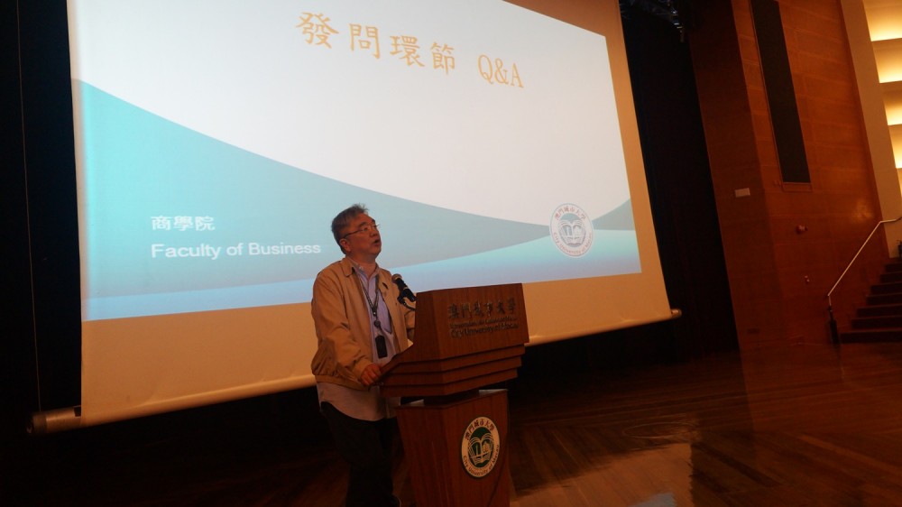 On 2nd March, 2016, the BBA Program Specialization Briefing Session was held in the Cultural Centre, City University of Macau. Professor Kong Fanqing, Vice Rector of CityU, attended the Briefing Session and delivered an opening address. She remarked that the session would help students to attest their direction on future pathway. The Vice Rector, Professor Kong believed that students would be able to elect the appropriate specialization according to their interest after attending the session.