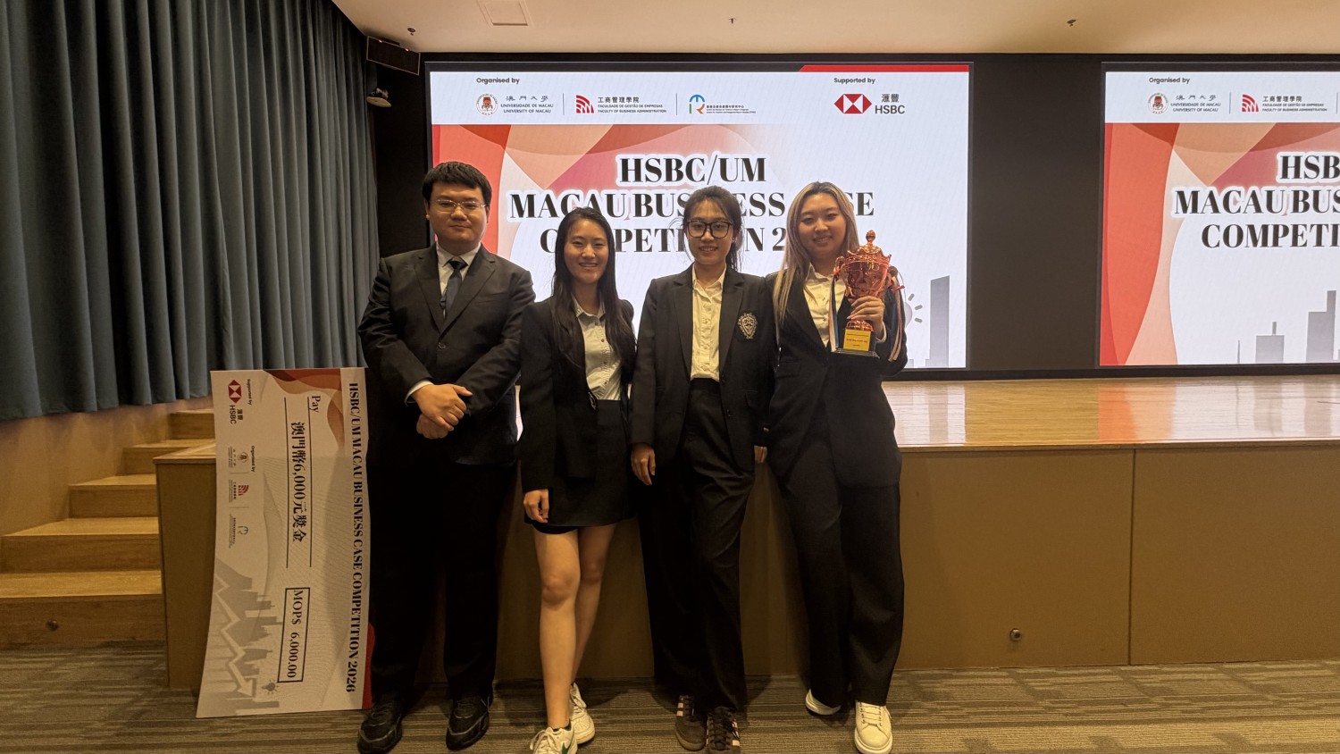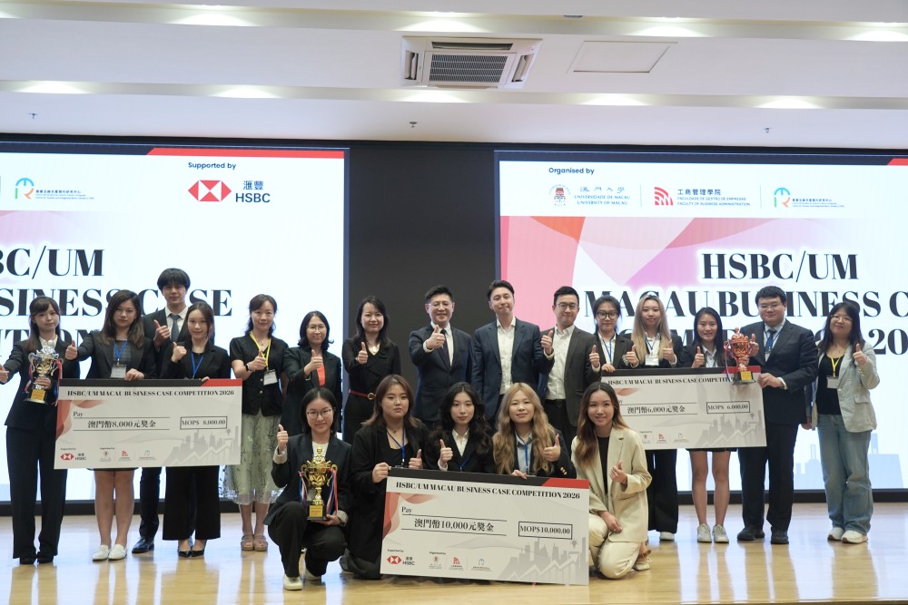 On April 15, 2026, the "HSBC/UM Macau Business Case Competition 2026" hosted by the University of Macau, came to a successful conclusion. A student team from the graduating IBC class of the Faculty of Business at the City University of Macau delivered an outstanding performance in the competition. With their exceptional case analysis skills and innovative business solutions, they stood out among many participating teams, won the second runner-up prize, and received a MOP 6,000 award from HSBC Macau Branch. This achievement fully demonstrated the solid professional competence and excellent teamwork of CityU Macau students.